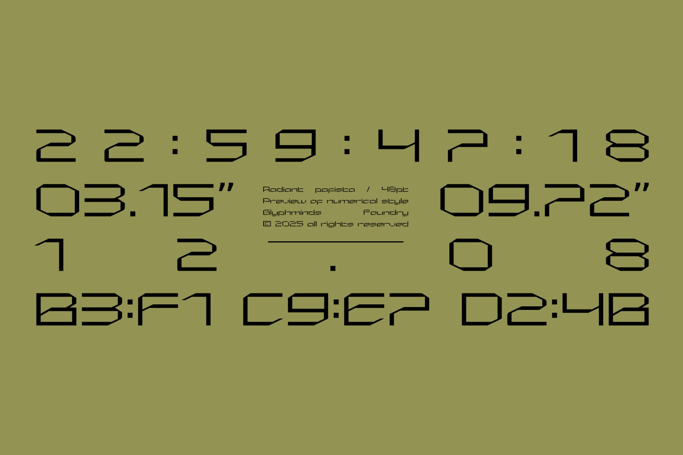 Step into the future with Radiant Pafista, a powerful and dynamic display font that will launch your designs into a new dimension. With its sharp angles, bold geometric construction, and unique stencil-like details, Radiant Pafista is engineered to make a statement.